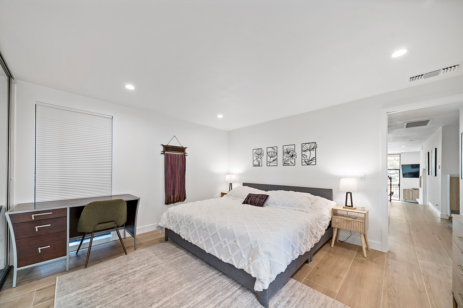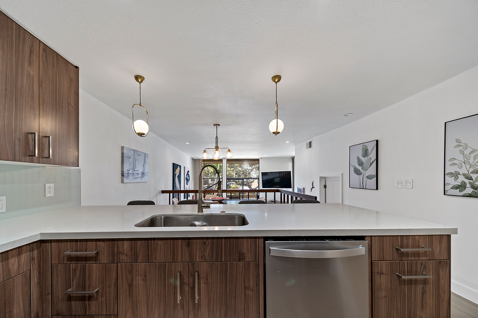 The open-concept living area includes a completely renovated modern kitchen with stainless steel appliances and great counter and cabinet space.